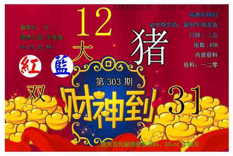 303期:绝杀三肖╠牛鼠虎╣开:兔15准